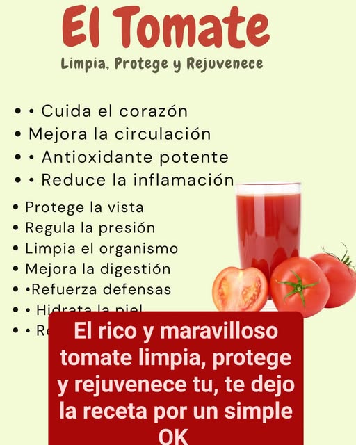 - En la búsqueda de mantener una salud óptima, a menudo encontramos remedios naturales que son efectivos y accesibles. Entre ellos, el tomate se destaca como uno de los alimentos más poderosos y beneficiosos para nuestra salud. Este fruto, que es un básico en la cocina de muchas culturas, no solo realza el sabor de nuestros platillos, sino que también brinda una multitud de beneficios que cuidan de nuestro corazón y rejuvenecen nuestro organismo.