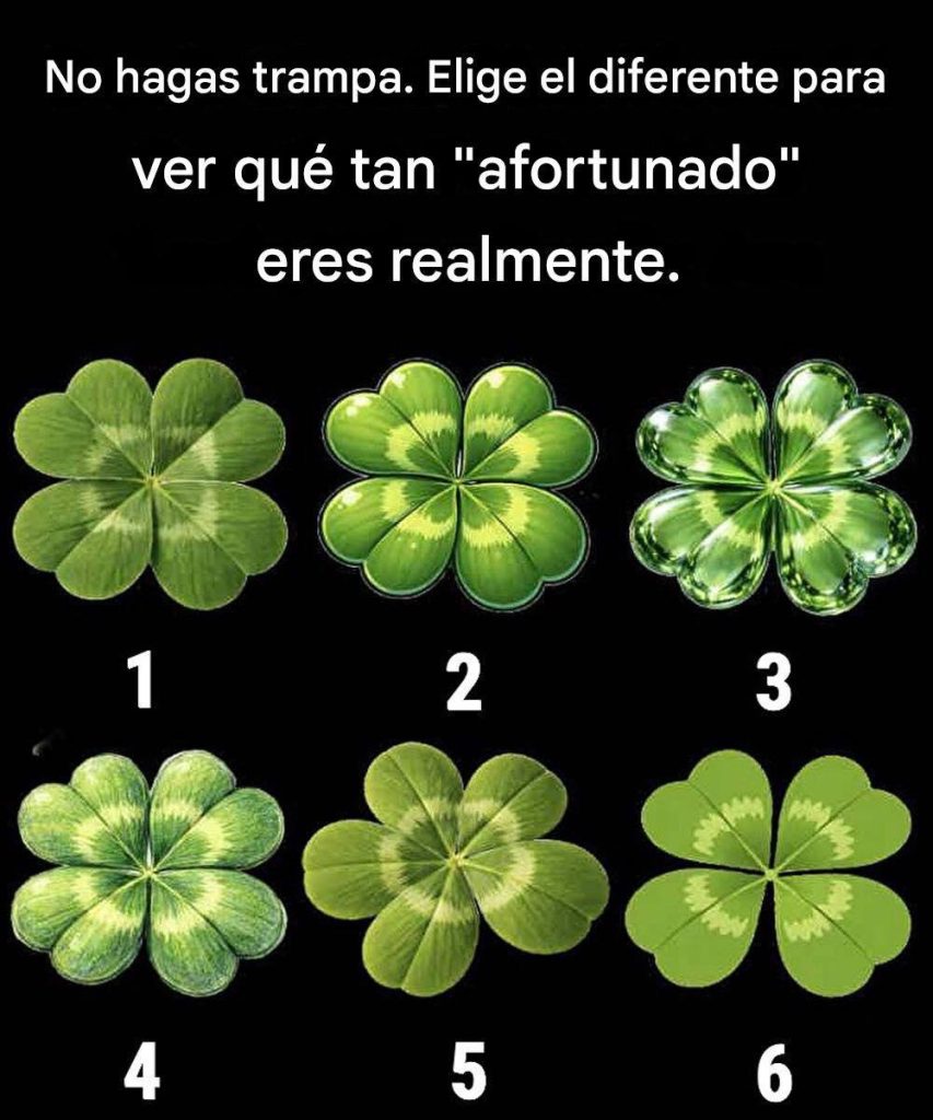 A primera vista, la imagen parece un juego sencillo: seis tréboles, cada uno ligeramente diferente, y un único reto: encontrar el que no encaja. Pero bajo esta prueba lúdica se esconde algo más intrigante. No se trata realmente de suerte… sino de percepción, intuición y personalidad.